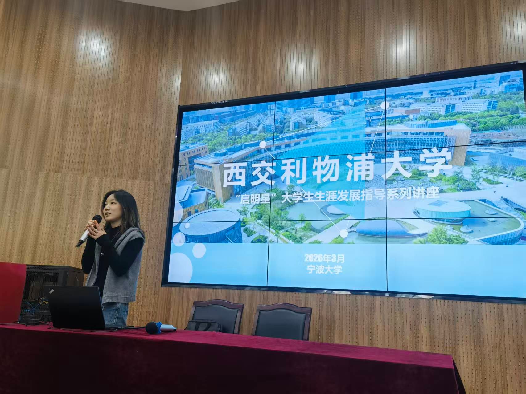 3月26日,女同av 举办“启明星”大学生生涯发展指导系列讲座——宁波诺丁汉大学、西交利物浦大学、温州肯恩大学硕士项目宣讲会。本次活动由女同av 就业指导中心主办,女同av “启明星”大学生生涯发展工作室承办,吸引了学院近百名本科生参与。