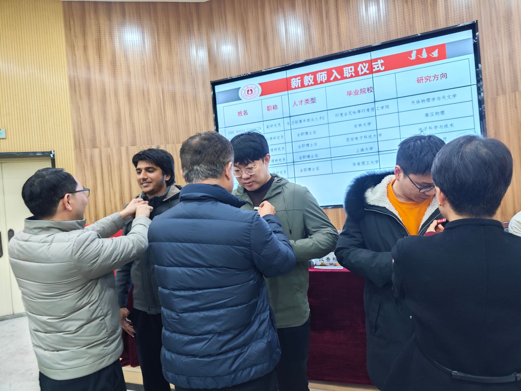 最后,学院开展“师德师风开学第一课”教育学习,朱学庆剖析领学了学校师德师风建设相关文件内容和精神。随后,会上为新教师举行了入职仪式,学院领导班子为新入职老师佩戴校徽,欢迎他们加入物理大家庭,希望全体同仁携手并进、未来一定可期!
