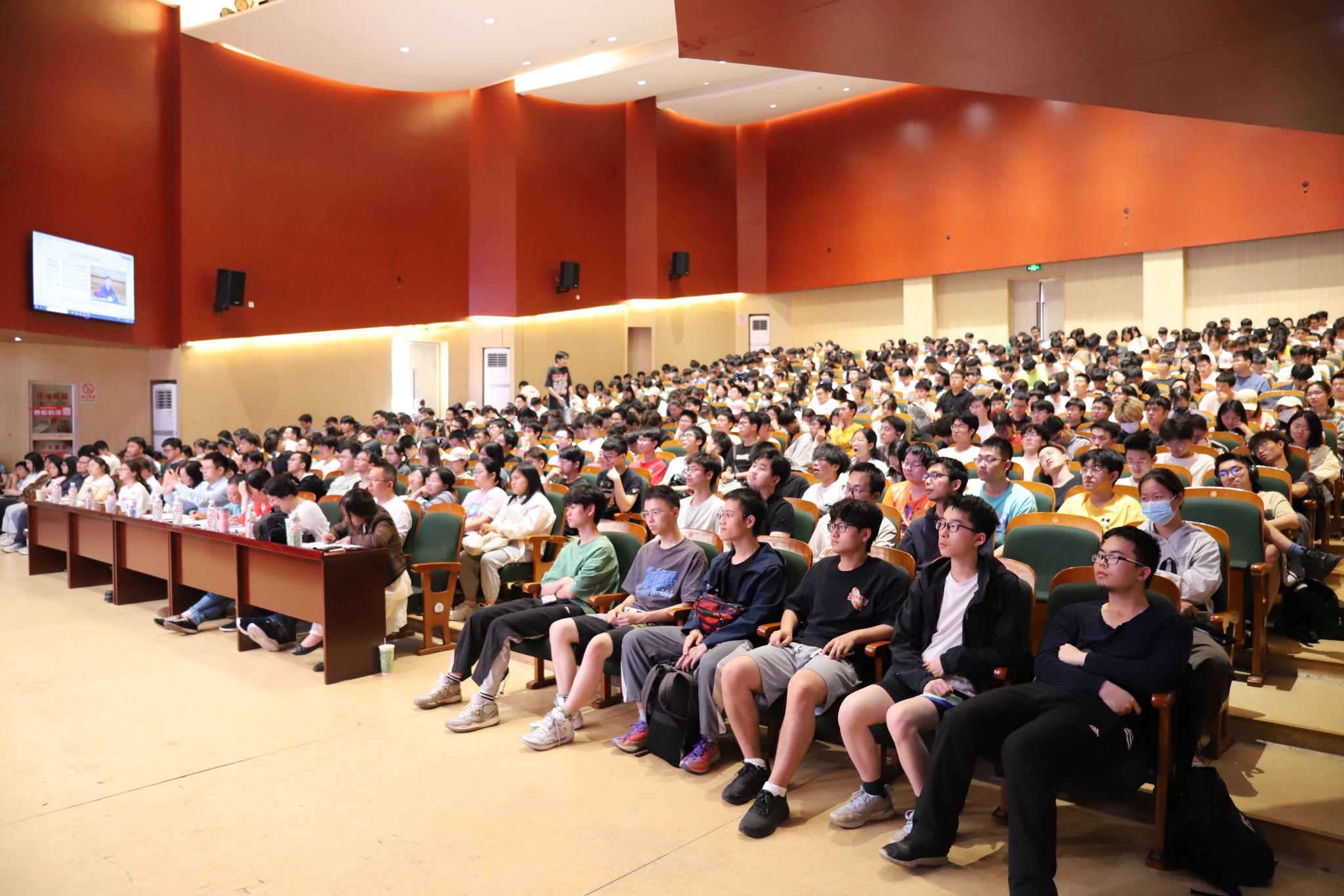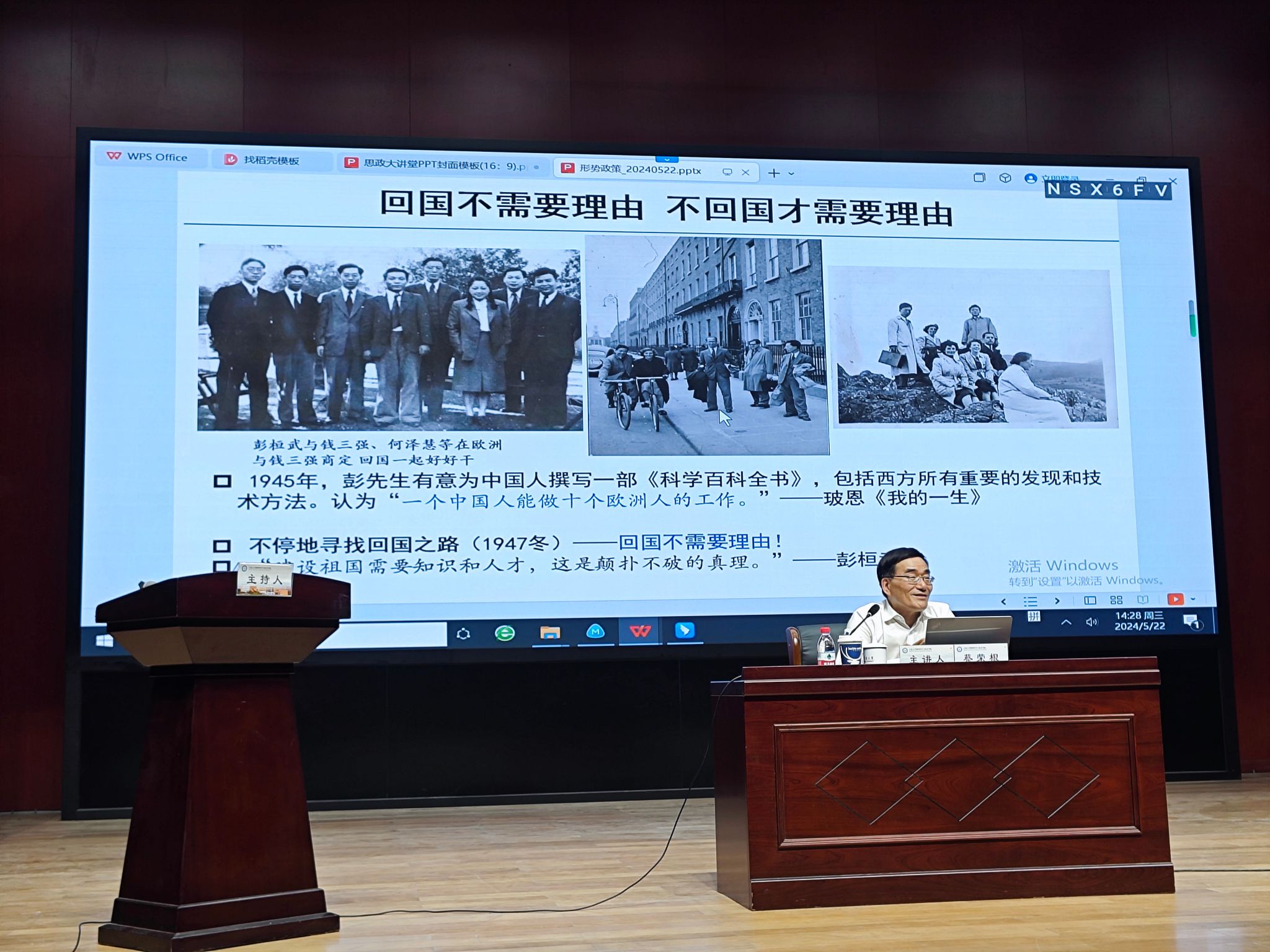 5月22日,校长蔡荣根院士在忻元甫报告厅以“弘扬科学家精神——以彭桓武先生为例”为主题,为物理科学与女同av 和阳明女同av440余名师生讲授“形势与政策”课。