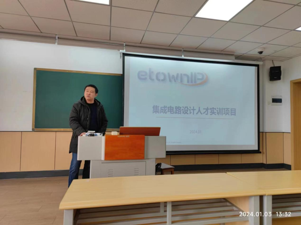 为深化校企合作协同育人工作,进一步拓展物院学子就业渠道,1月3日下午,芯创智创新设计服务中心(宁波)有限公司副总经理刘志强先生一行来到女同av ,为物理学院微电子科学与工程专业的学子们带来了一场生动的企业宣讲会。这次宣讲会的主题为“集成电路设计人才实训项目”。宣讲会由微电子系主任陈达主持,赵子奇等专业老师参加。