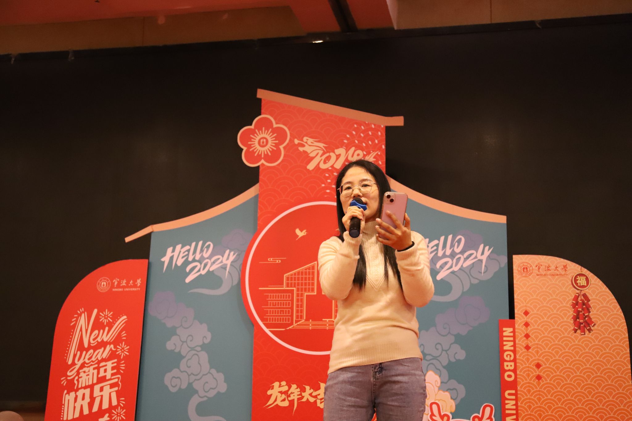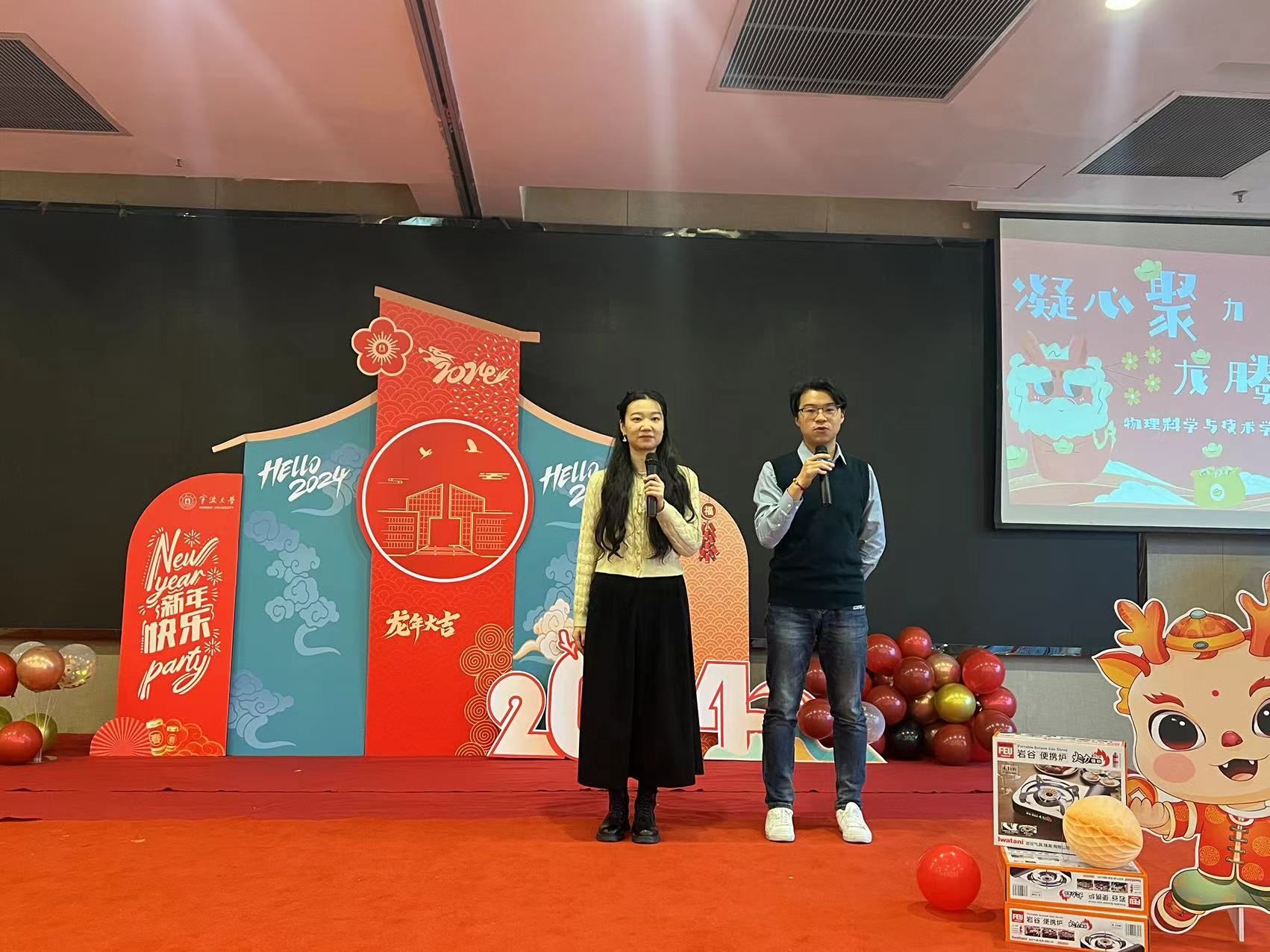 学院行政老师、物理系教师、微电子系教师先后献上精彩纷呈的文艺节目,营造了喜气洋洋、其乐融融的节日氛围,互动游戏环节更是博得现场欢声笑语、喝彩阵阵。此外,学院还为到场的全体教职工准备了浓浓暖意的新春“福”袋,祝愿大家龙年大吉,阖家幸福。