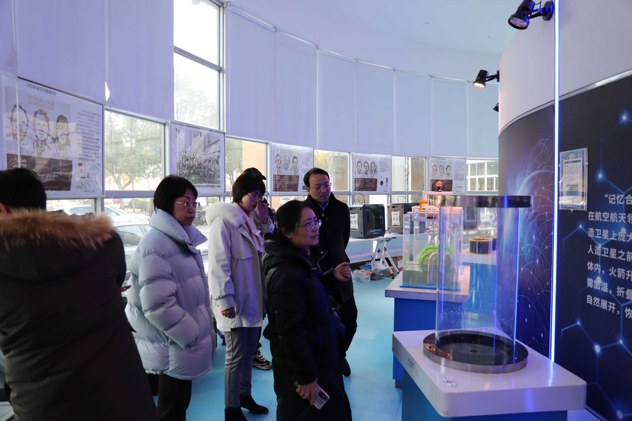 海外一行首先在执行院长段香梅的陪同下参观物理探索中心,潘雪丰老师详细介绍了中心的各类实验装置和科普仪器,并进行了简单的演示操作。张宗余书记一行对探索中心的各类器材展现了浓郁的兴趣,表示希望未来依托物理探索中心,广泛开展中小学生第二课堂和科普宣讲等合作。