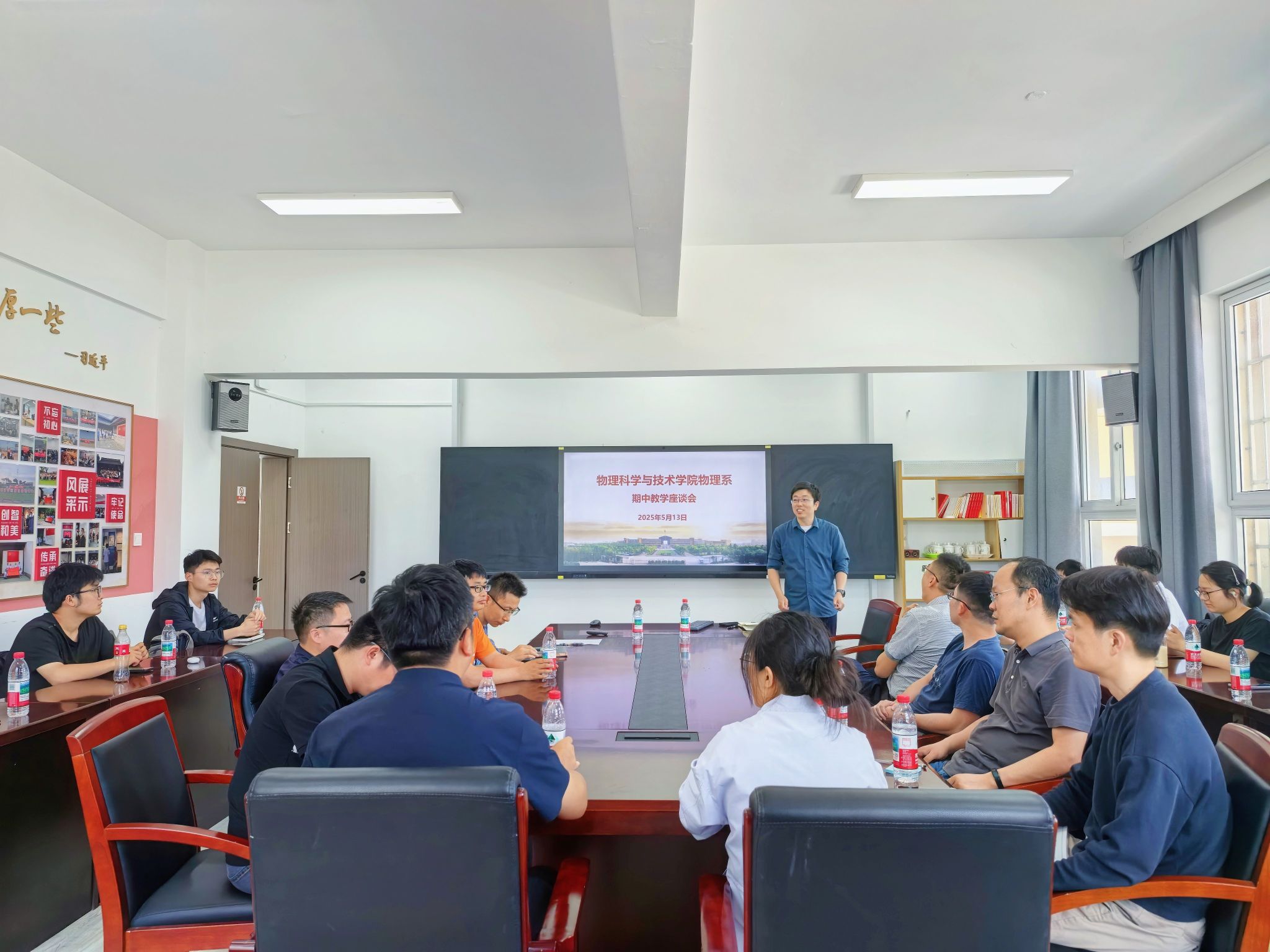 2025年5月13日中午,女同av 物理系期中教学座谈会在龙赛理科楼228会议室顺利召开。会议由物理系主任汤世伟主持,教师代表、学生代表、教务办老师参与,围绕同学们的学习和生活展开讨论。