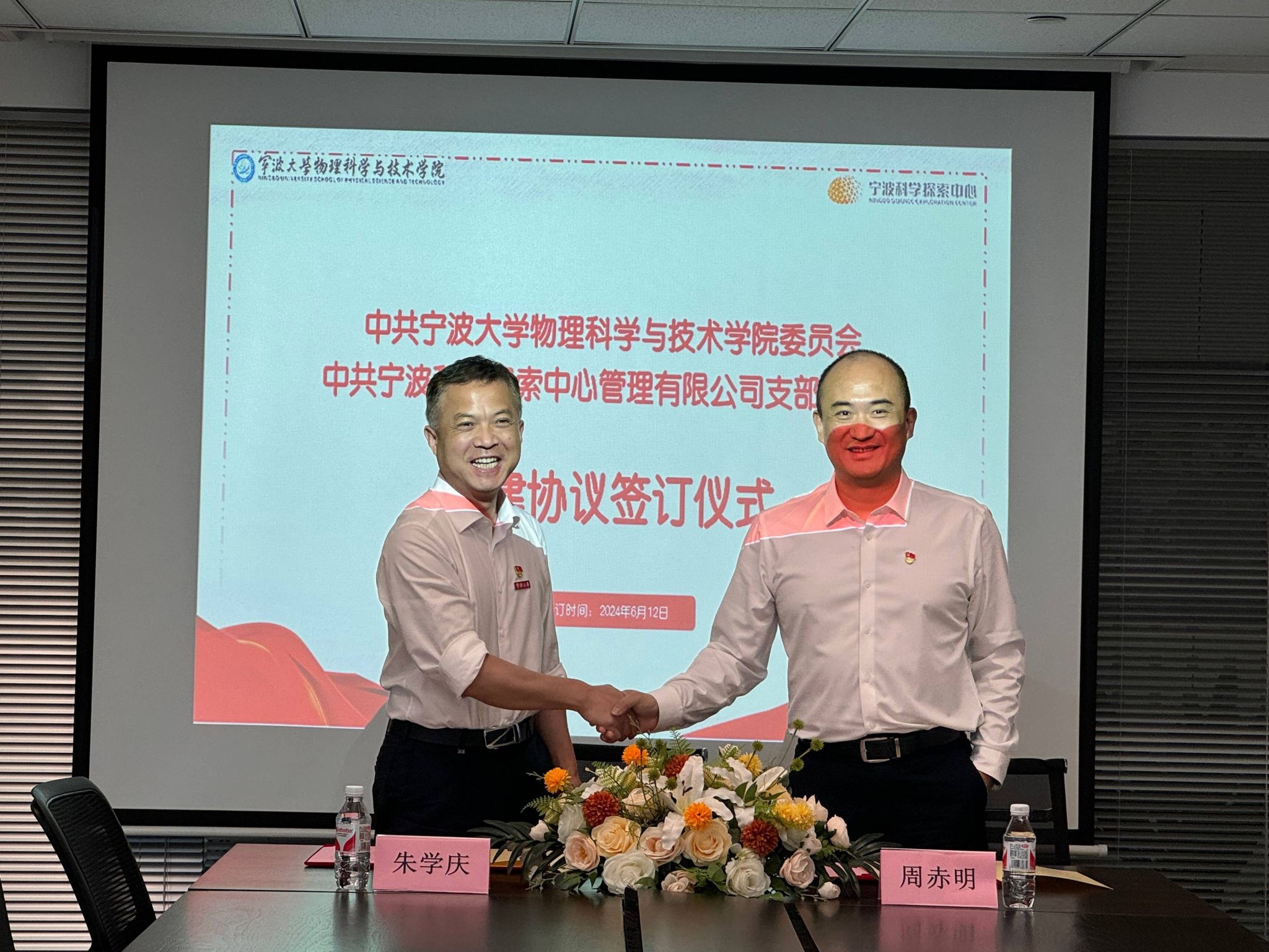 最后,女同av党委书记朱学庆与宁波科学探索中心管理有限公司总经理周赤明签订《女同av 党委与宁波科学探索中心党支部共建协议书》。