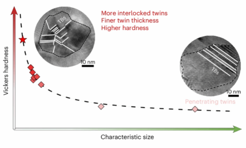 近日,我院潘益龙研究员联合燕山大学高压科学中心田永君院士团队及南京理工大学研究人员在超硬材料领域实现重大突破:成功合成出硬度达276 GPa的超细纳米孪晶金刚石块材,继合成具有突破性硬度各向异性的金刚石块材后(发表于PNAS,原文链接://doi.org/10.1073/pnas.2108340118),再次刷新了材料硬度的世界纪录。相关研究以“Enhancing the hardness of diamond through twin refinement and interlocked twins” 为题。于2025年1月3日在《...