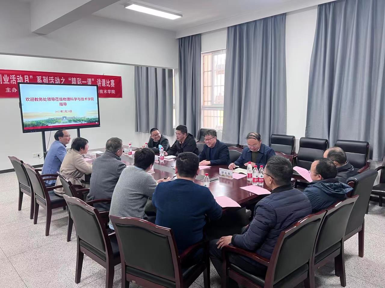 2月28日下午,校教务处处长李国平携副处长林波、胡良根、周刚毅一行到物理科学与技术院调研,学院院长段香梅、党委书记朱学庆、教学副院长胡子阳、专业负责人、教务办主任及教师代表参加了本次调研会。会议由物理学院教学副院长胡子阳主持。首先,胡子阳代表学院对李国平一行开展的调研活动表示欢迎。并对物理学院设施设备建设、师资队伍建设、教学管理等方面做了汇报。 接下来,调研会围绕教学运行管理过程中遇到的问题及建议...