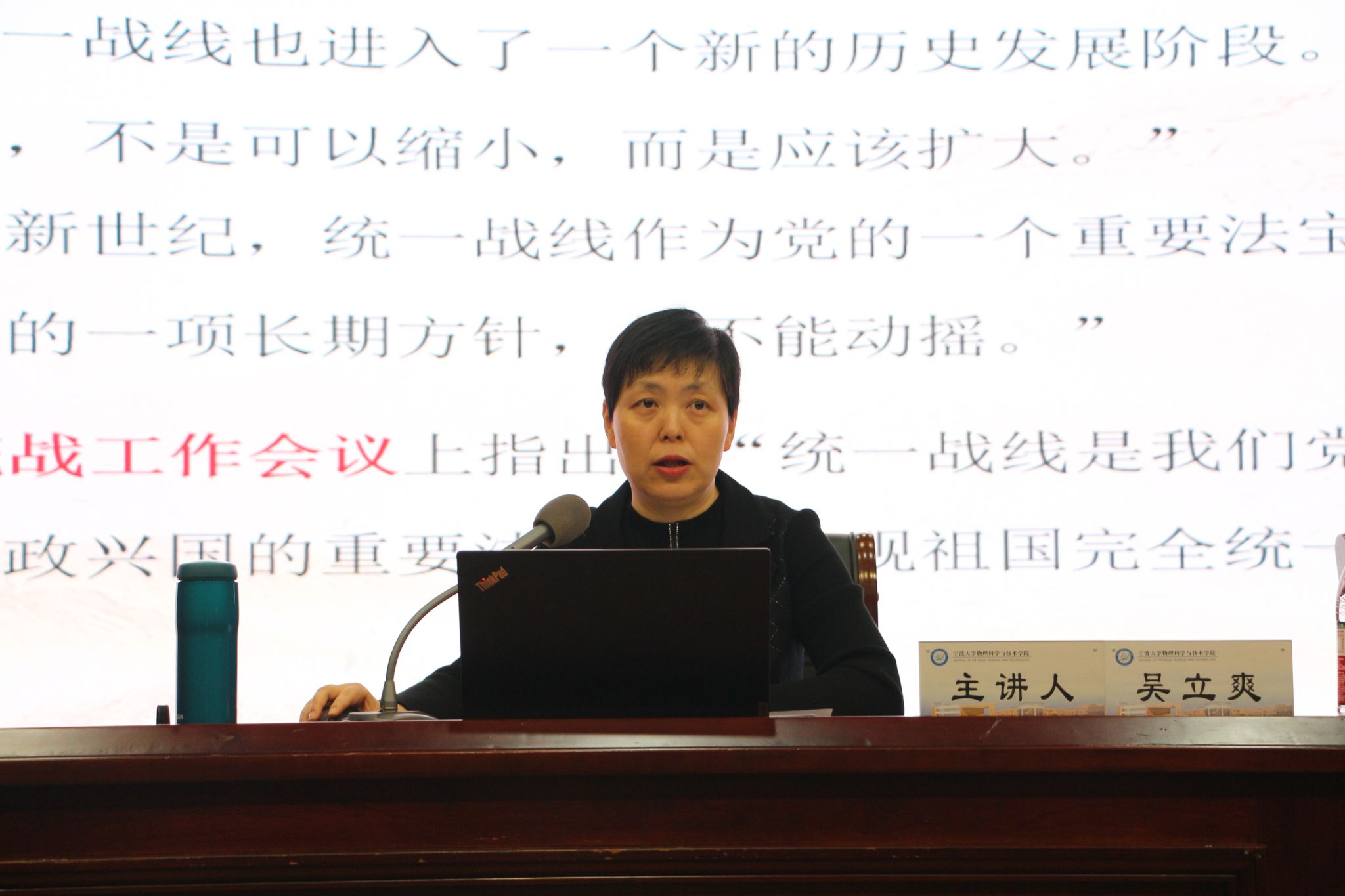 在真诚图书馆报告厅举办2023下半年“形势与政策”课程。宁波大学统战部部长吴立爽受邀以“汇聚统一战线团结之力,凝聚强国复兴青春力量”为主题,用通俗的语言、严谨的逻辑、生动的案例为物理科学与女同av