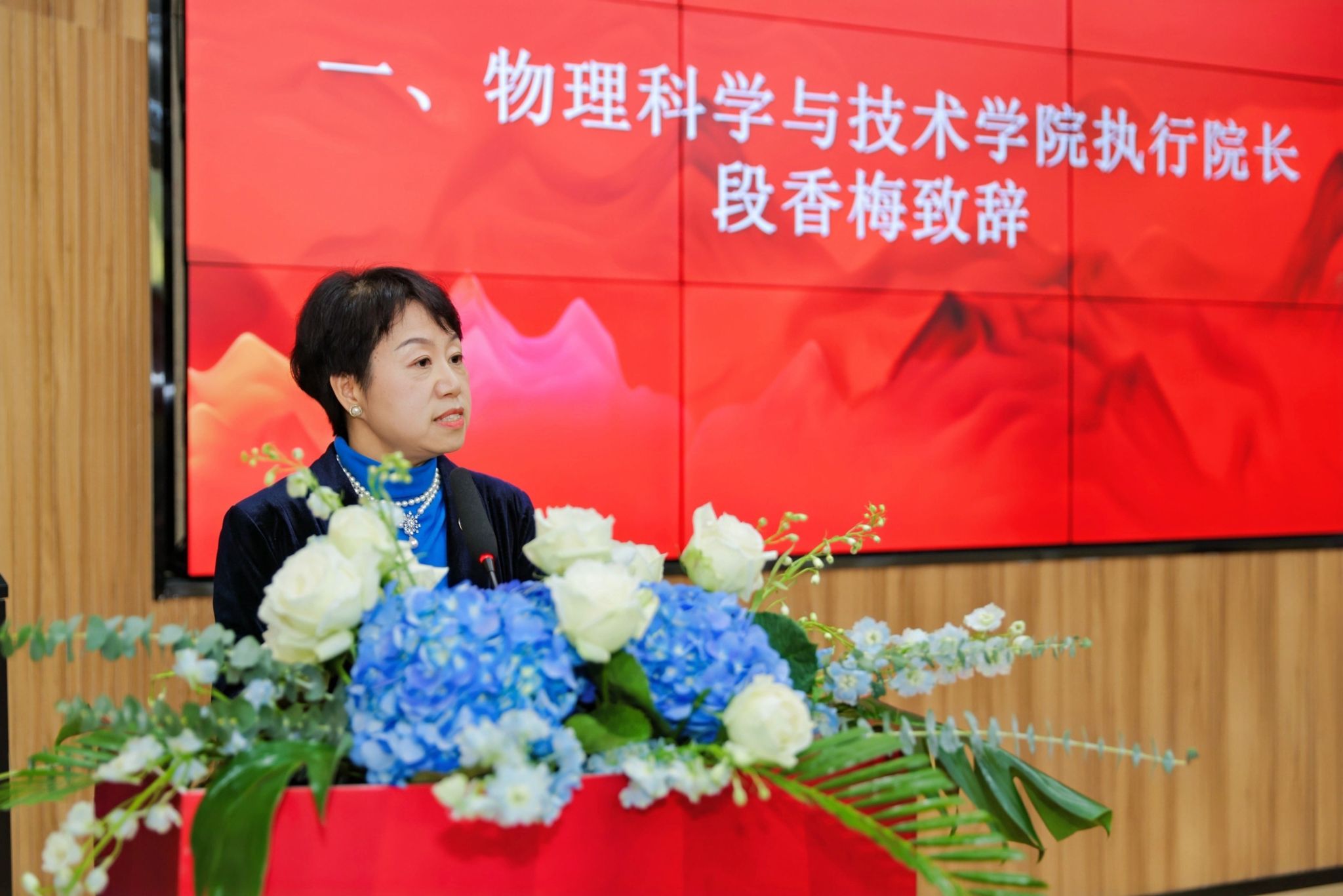 执行院长段香梅致欢迎辞,她回顾了物理科学与女同av 六十余年来的办学历程,介绍了女同av目前在学科建设、师资队伍、人才培养等领域取得的成效。她强调,女同av的迅猛发展离不开广大优秀校友的关心与支持,校友会的成立建立起校友与母院的沟通桥梁,搭建了校友之间资源共享、联络感情的平台,她呼吁校友们倾情母院、关怀母院、助推母院,携手共绘母院新的辉煌与荣耀。