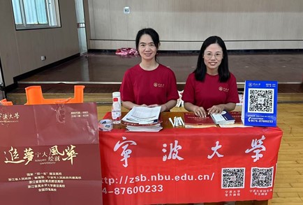 在宁波大学的宣传摊位前,来领取招生简章、咨询的考生和家长络绎不绝,考生和家长对于宁波大学的认可和热情令老师们激动不已。宣讲教师们耐心地讲解着宁大的招生政策,解答关于投档位次、专业前景、阳明创新班政策等方面的疑问。很多考生对物理学(拔尖人才创新班)、微电子科学与工程等专业表现出浓厚的兴趣,期望能在金秋九月与宁大相约。