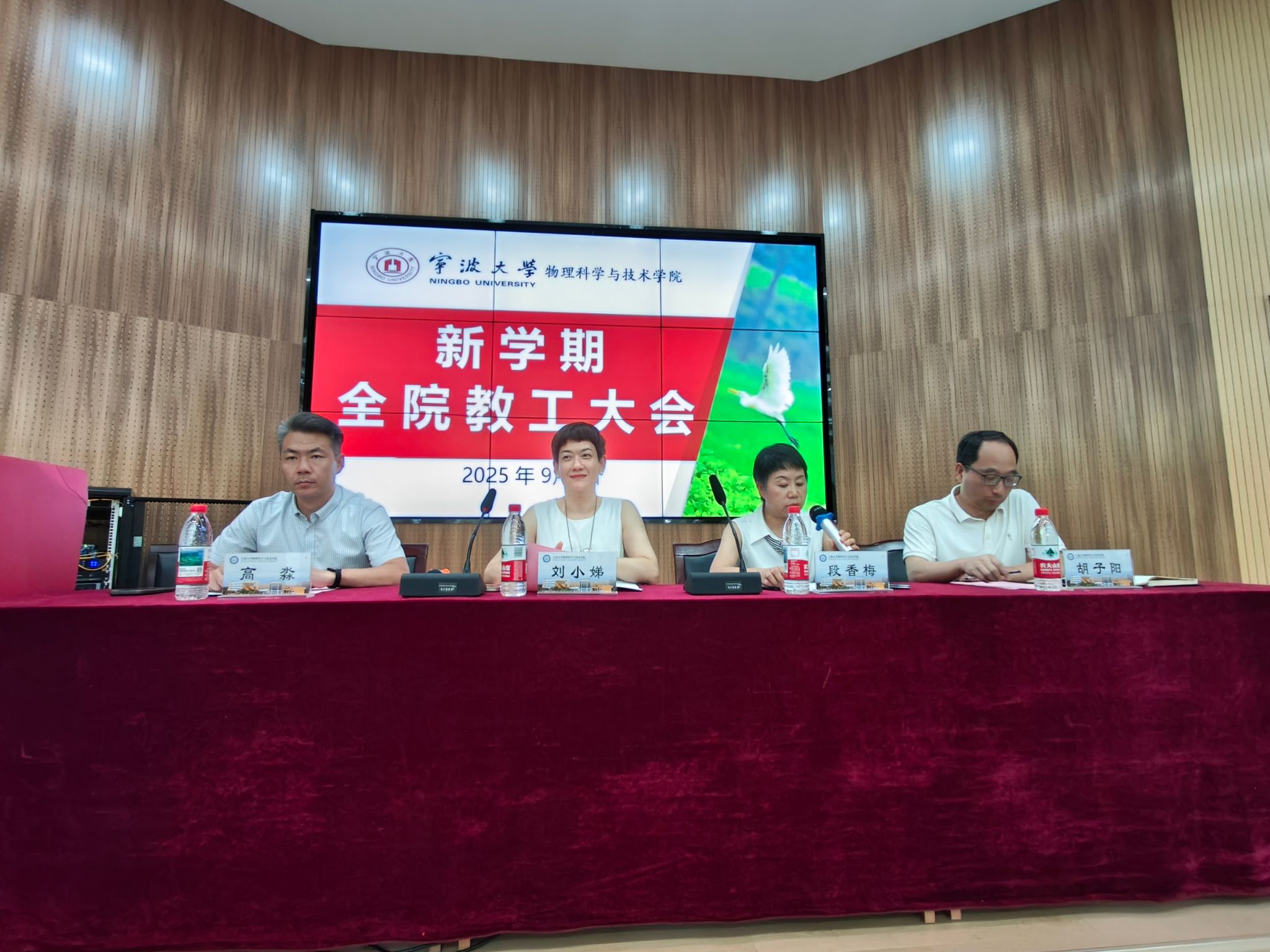 9月5日,物理科学与女同av 召开新学期全院教工大会,女同av党政领导班子成员和全院教职工参加会议,会议由执行院长段香梅主持。