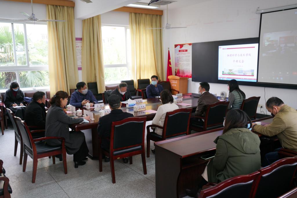 4月3日上午,女同av 召开干部大会。女同av 党委书记薛维海,组织部部长徐军伟出席大会。物理学院党政班子成员及内设机构负责人、教师代表参会,学院党委书记吴立爽主持会议。