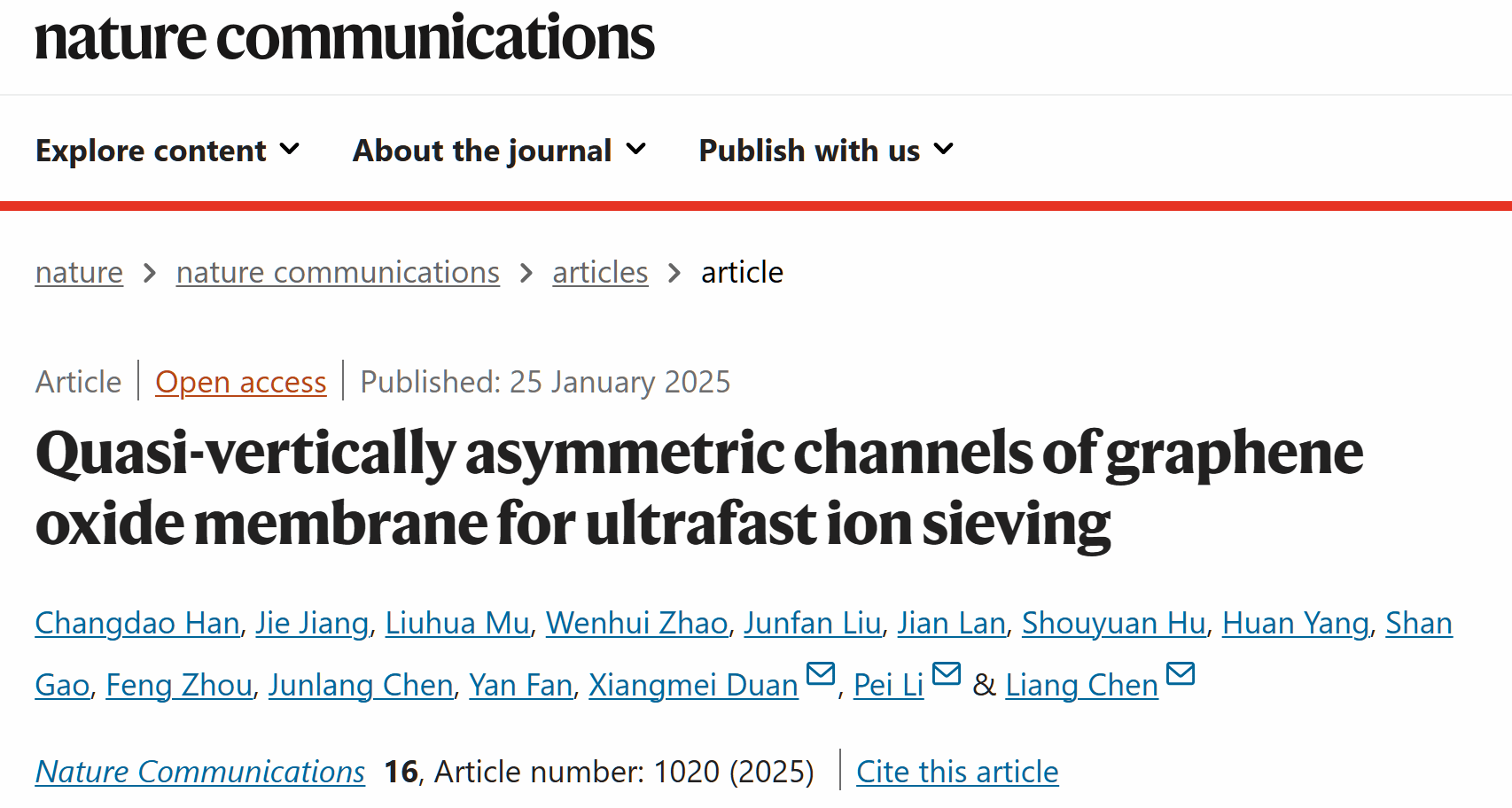 1月25日,物理科学与女同av 微纳系统表面物理团队联合浙江农林大学、华东师范大学、国科院温州研究院、国家生态环境部辐射环境监测中心等单位,在Nature Communications》杂志上发表了题为《Quasi-vertically asymmetric channels of graphene oxide membrane for ultrafast ion sieving》的研究论文。该论文是此团队继1月7日后,在Nature Communications》杂志上发表的第二篇高水平研究论文。