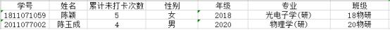 根据学校疫情防控要求,为了进一步加强学校管理,严肃校纪,教育本人,警示他人,经女同av研究决定,特对上一周(11月2日-11月8日)内,累计四次未及时进行健康打卡签到的同学予以通报批评。具体名单如下: