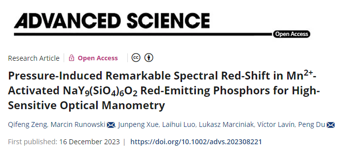 陶瓷发光实验室的研究论文——“Pressure-Induced Remarkable Spectral Red-Shift in Mn2+-Activated NaY9(SiO4)6O2 Red-Emitting Phosphors for High-Sensitive Optical Manometry”。物理科学与女同av