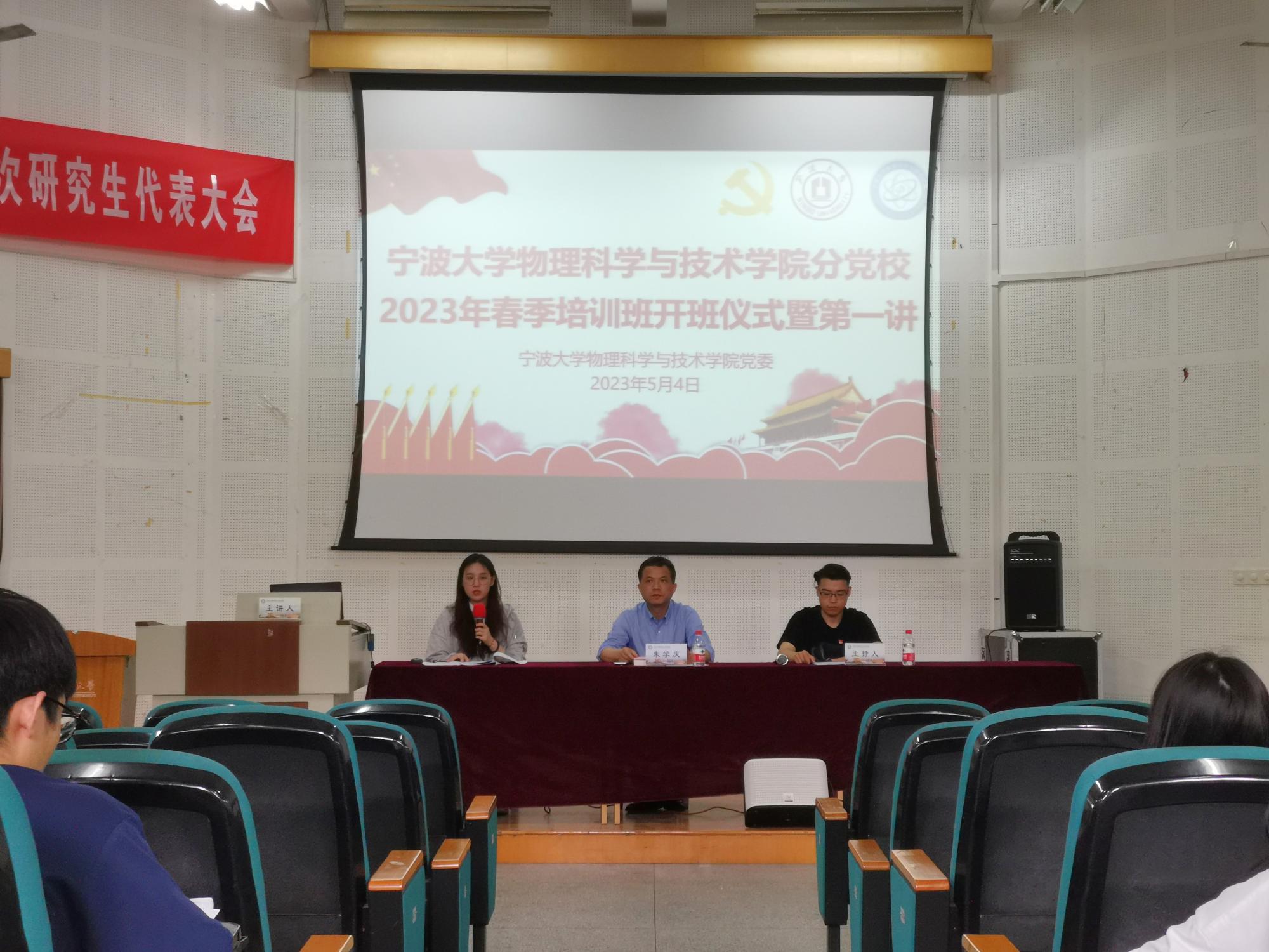分党校2023年春季培训班开班仪式在龙赛理科楼报告厅隆重举行。物理学院党委书记、分党校校长朱学庆、学院党建工作中心学生负责人陈佳芊、参与本次培训的近70名学员参加仪式。仪式由党建辅导员、分党校班主任张锡炜主持。开班仪式在庄严的国歌声中拉开帷幕。张锡炜首先强调了党校培训对广大同学学习政治理论和党的基本知识的重要性,并详细介绍了本次分党校培训的日程安排和主题内容...