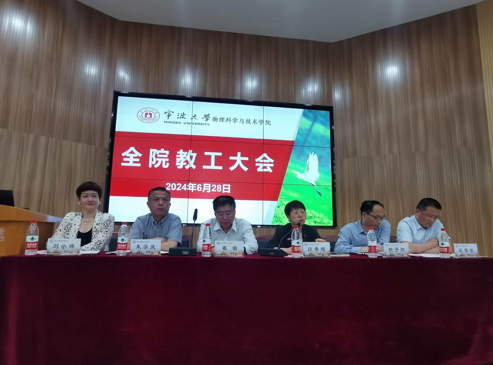 在一餐三楼教工餐厅隆重举办“逐梦破浪,物理新程”2024届毕业生欢送会。学院党政领导、各办公室主任、毕业班班主任、导师代表、辅导员和全体2024届本研毕业生参加。欢送会伊始,学院党委书记朱学庆致辞。他首先代表学院向圆满完成学业的2024届全体毕业生表示衷心祝贺,对大家在保研考研、考编就业、科研竞赛等方面取得的成绩表示充分肯定。他谆谆嘱托全体毕业生,一要胸怀凌云志,既要有勇往直前的勇气和不畏艰难的决心,...